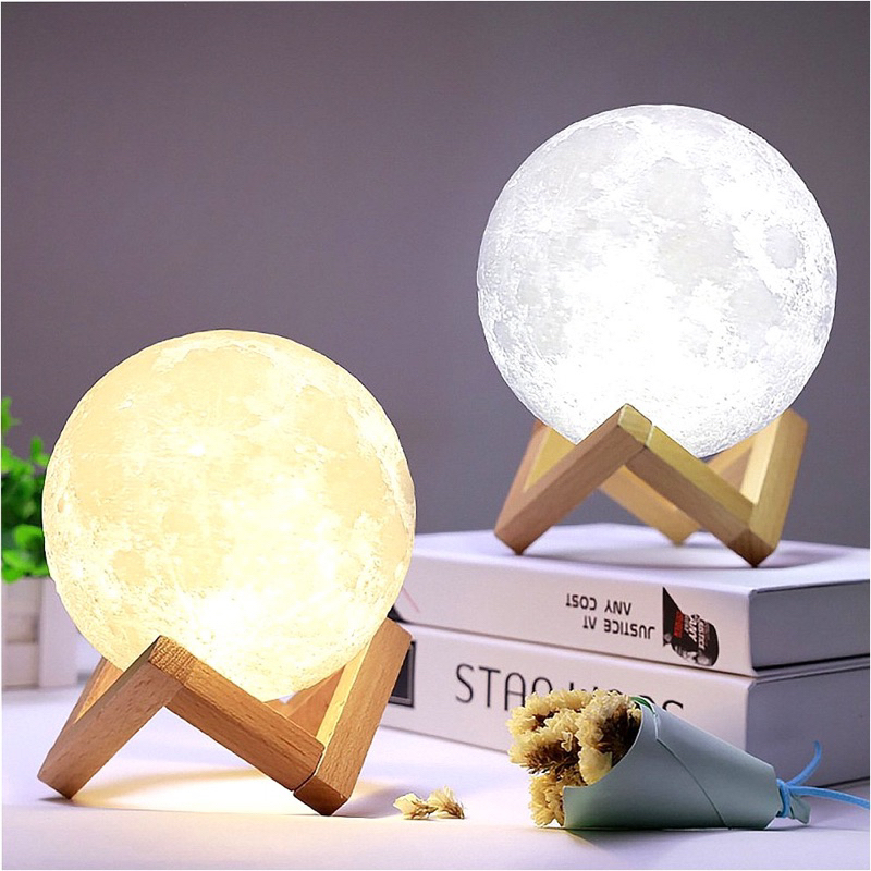 Luminária Lua Cheia 3d Abajur Recarregável Sem Fio Usb Touch 5 cores