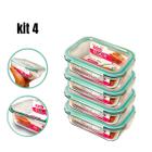 Conjunto Kit 4 Potes Herméticos de Vidro Marmita Fitness Retangular 640 ml