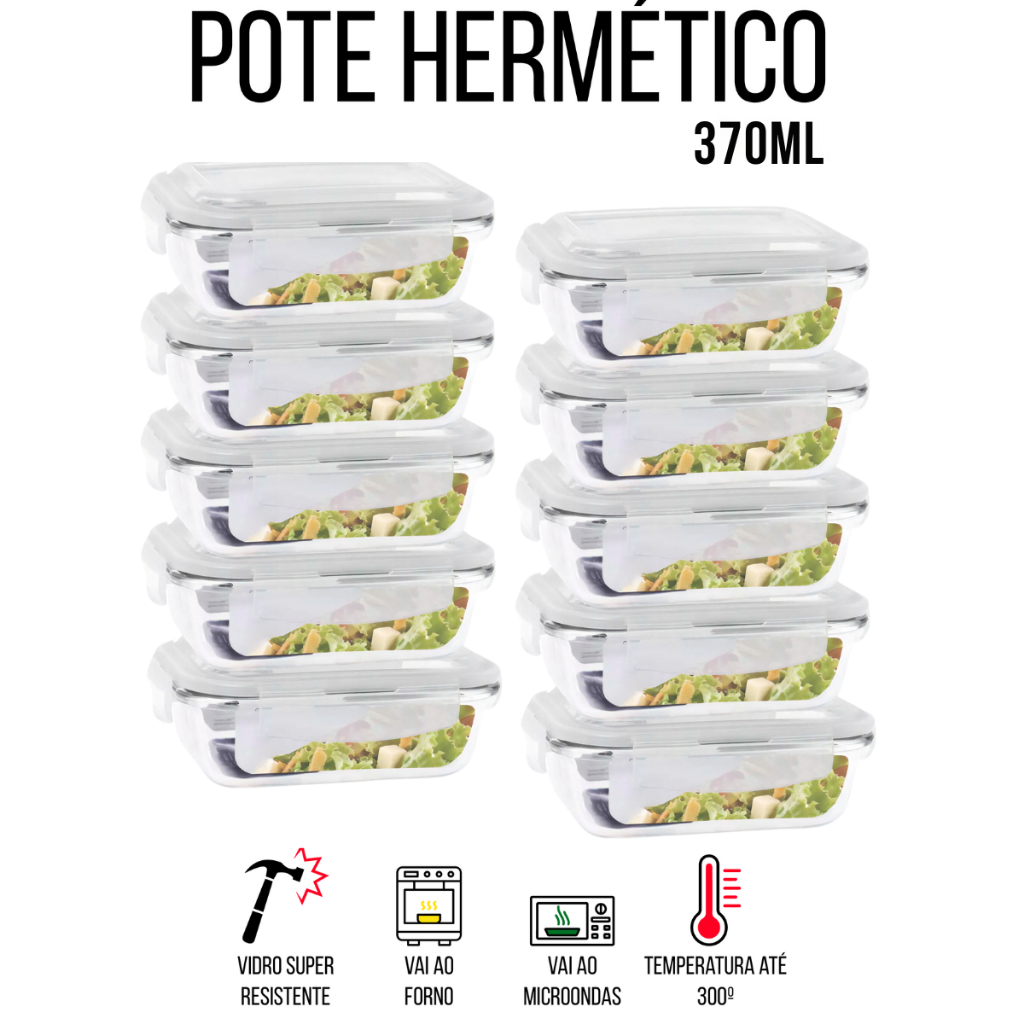 Kit 3/5/10 Potes Herméticos De Vidro Premium Para Marmita 370ML Com 4 Travas Resistente Conjunto