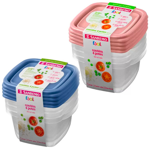 Kit 4 Potes Herméticos Plástico Com Tampa Sanremo 360mL Jogo de Vasilha Conjunto Marmita