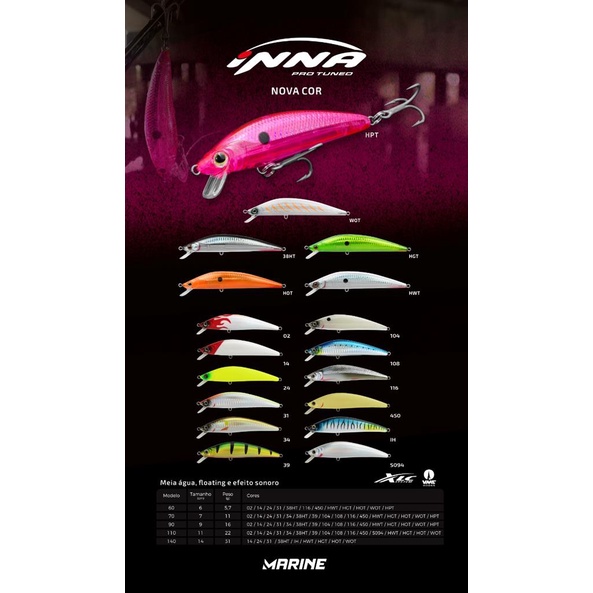 Isca Artificial Inna Pro 70 10g XLC Meia Agua Marine - Varias Cores