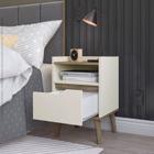 Kit 2 Mesinhas Apoio Lateral Cama Nicho Prateleira Pés Palito Jogo Mesa de Cabeceira Decoração Quarto Completo - Off White/Cinamomo - RPM Móveis