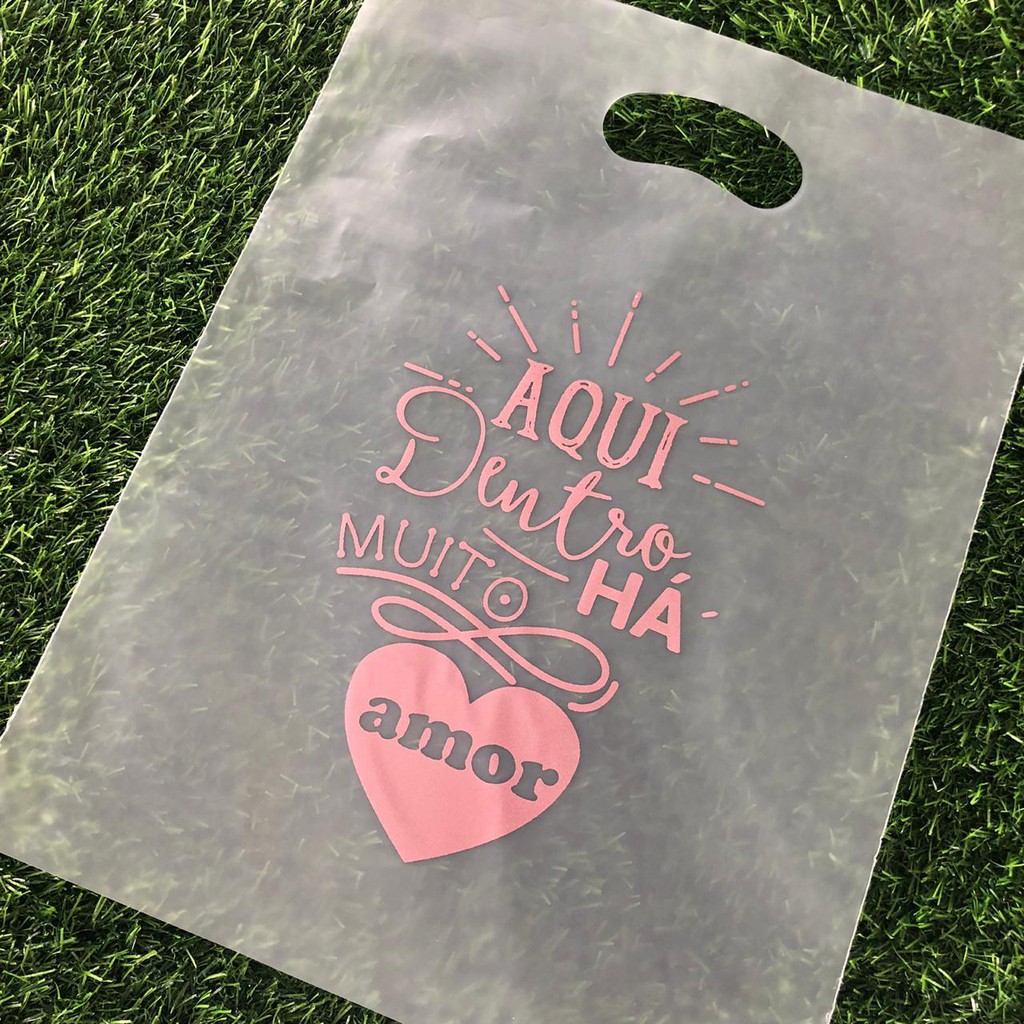 25 Sacolas Plasticas 30x40 Para Loja (aqui Dentro Há Muito Amor) - (gratidão Ter Você Como Cliente)