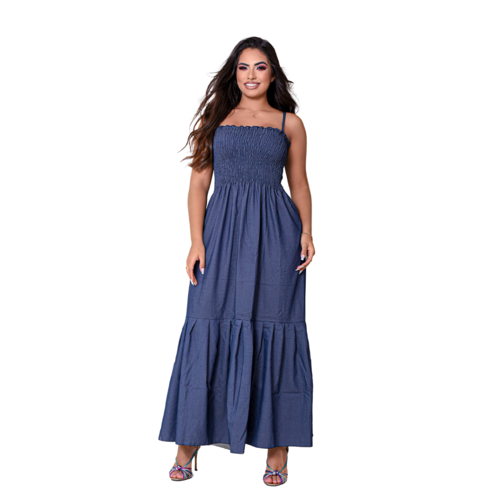 Vestido Longo Jeans Feminino Casual Moderno Vintage Elegante Para Verão Confortável Inverno Promoção