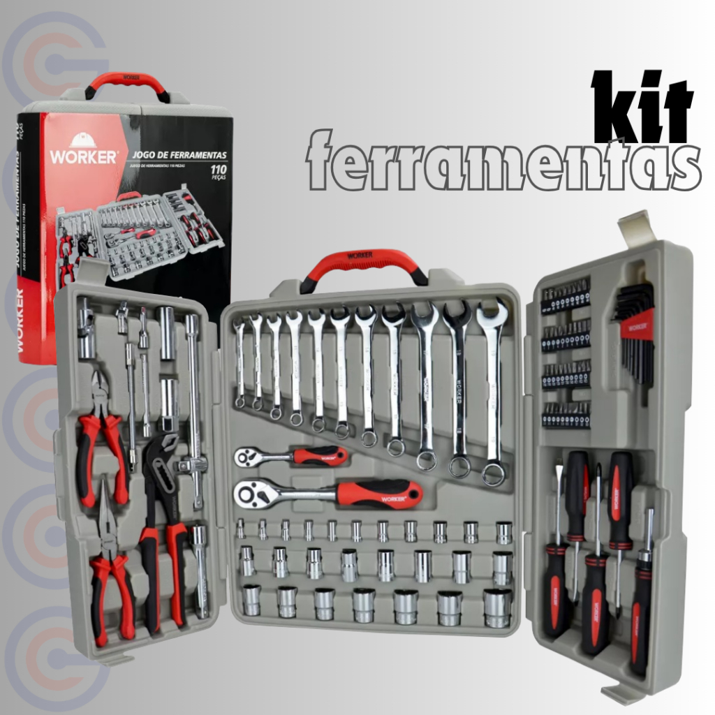 Jogo De Ferramentas Kit 110 Peças Profissional Com Maleta qualidade Worker