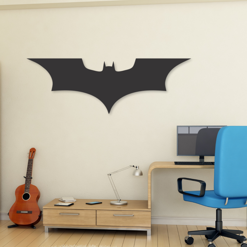 Placa Quadro Decorativo Batman Logo Modelo Straight DC Marvel Madeira MDF Com Fita Dupla Face Adesiva Preto Fosco