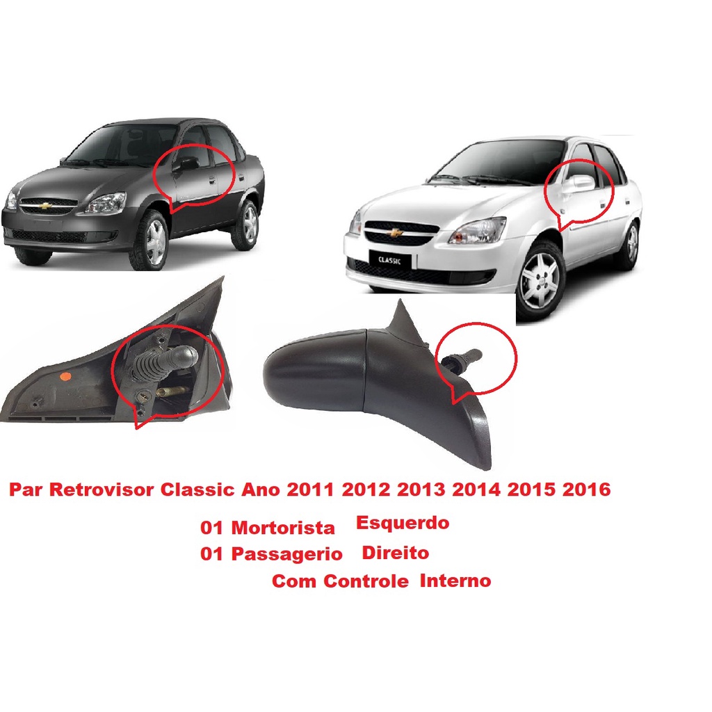 Par Retrovisor Corsa Classic 2011 2012 2013 2014 2015 A 2016 C/controle interno Esquerdo e Direito