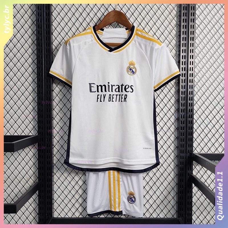 Novo 2023/2024 Camisa Da Equipe Infantil Madrid Home Set Camiseta Branca Para Crianças De Futebol VINI JR .