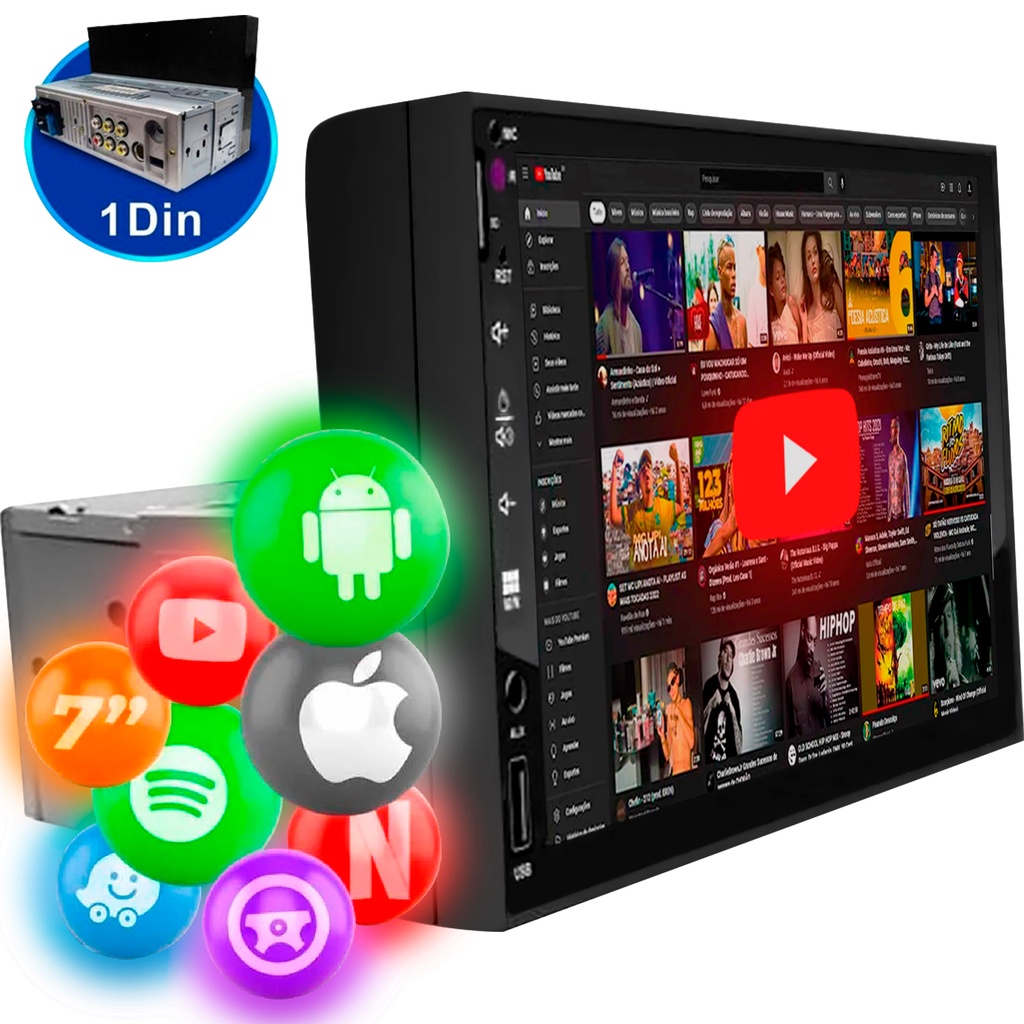 Acessórios para Carro Central Multimídia 1 Din Universal Touch Screen Bluetooth Plug USB Som Rádio Barato Promoção Preto