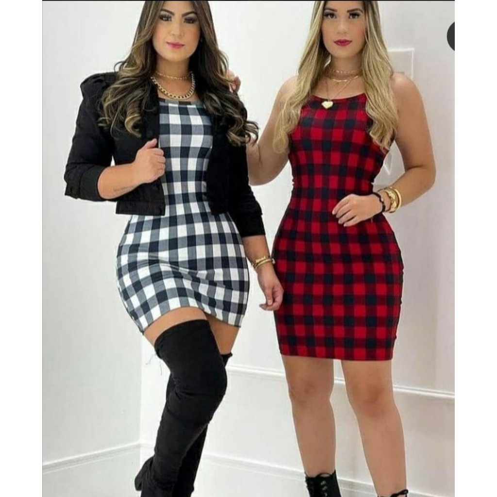 Vestido curto feminino xadrez onça e camuflado vestido tubinho de alcinha canelado moda blogueira