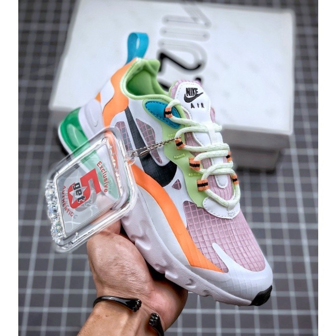 NK Air Max 270 React SE "Bubble Pack Smoke Cinza/Multi" 270 Reya Racing Series Meia Traseira Almofada de Ar All-Match Sports Jogging Shoes "Branco Verde Laranja"
