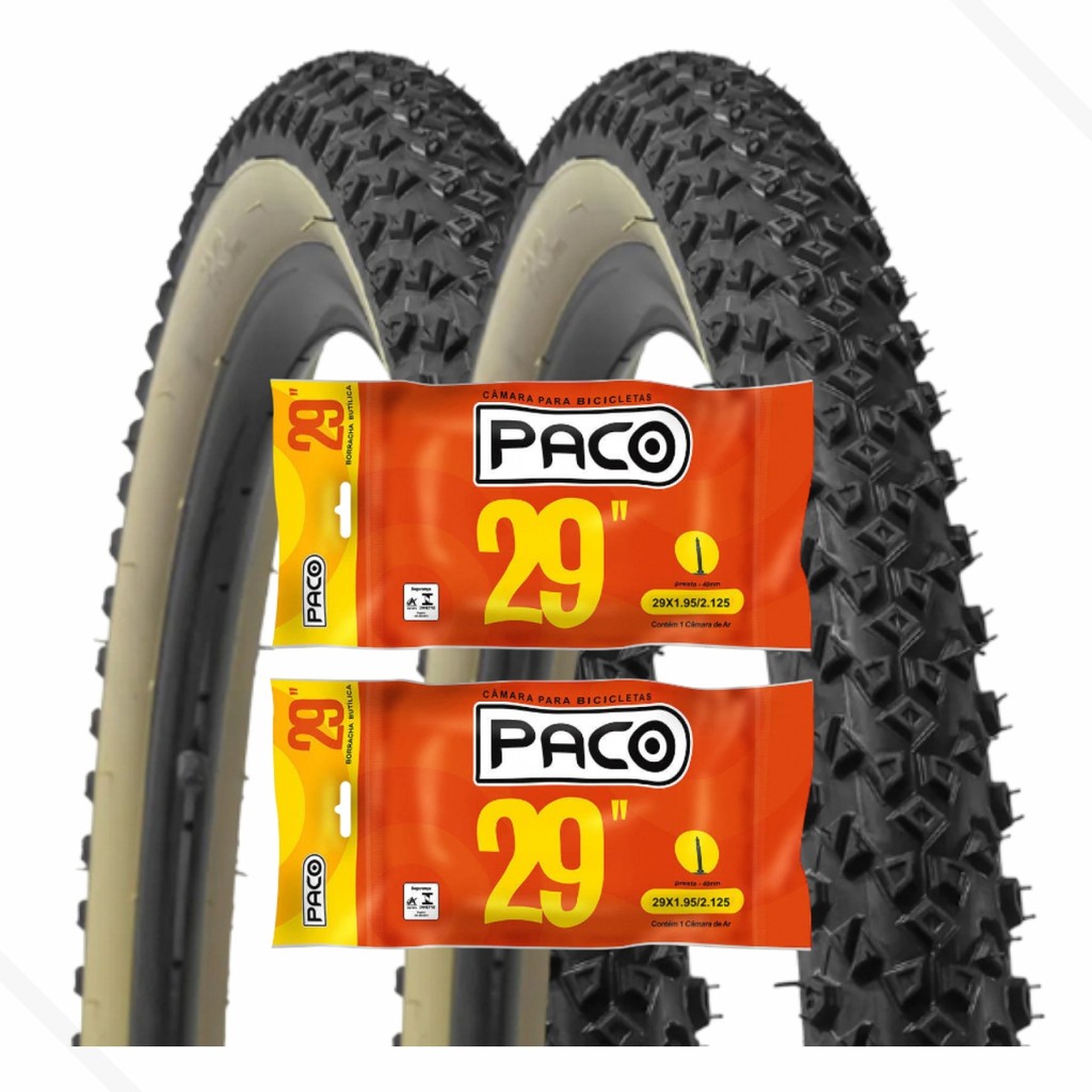 Par de Pneus Bike 29 x 2.10 Faixa Bege Mtb Paco Nomad + 2 Camara de Ar 29 Bico Grosso Schrader Paco