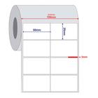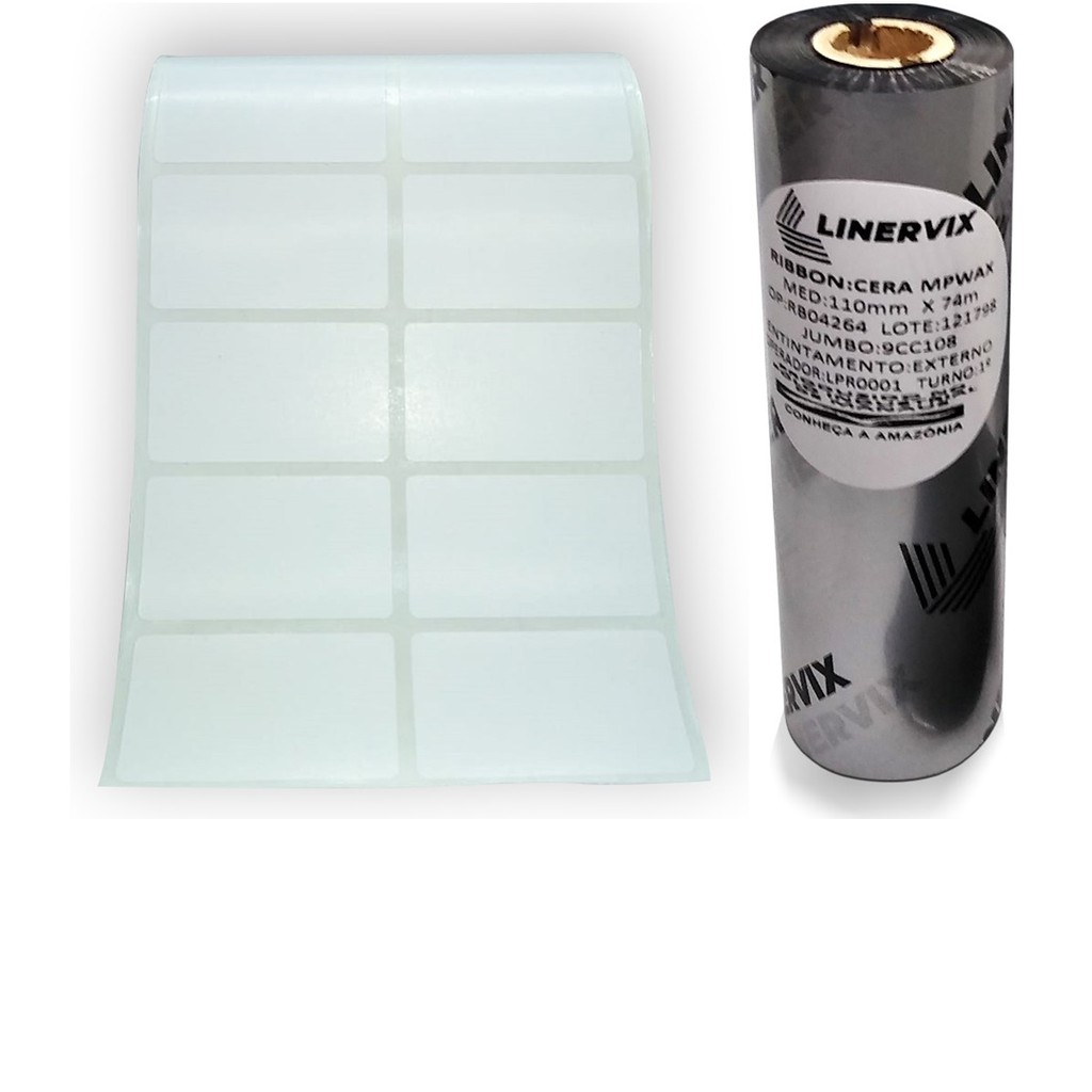 10 Rolos Etiqueta 50x30 mm 2 colunas Couche Branca + 5 Ribbon Cera 110x74