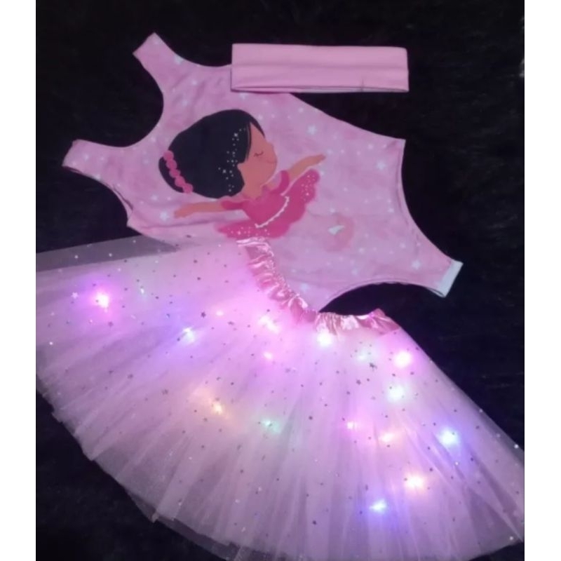 fantasia infantil balé bailarina faixa colan body bore led manguinha.