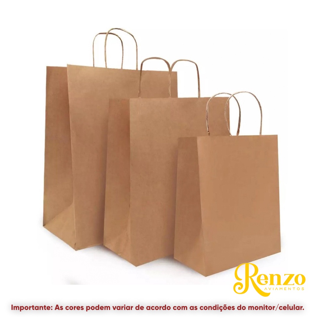 Sacola Papel Kraft Com Alça P, M ou G Com 50 unidades