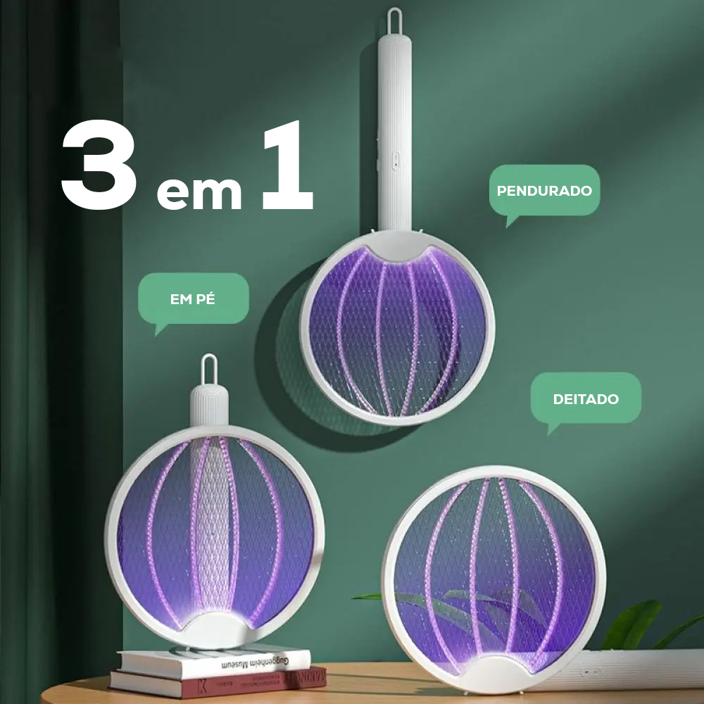 Raquete Armadilha Elétrica Dobrável Mata Mosquitos Três em Um - SD-1005