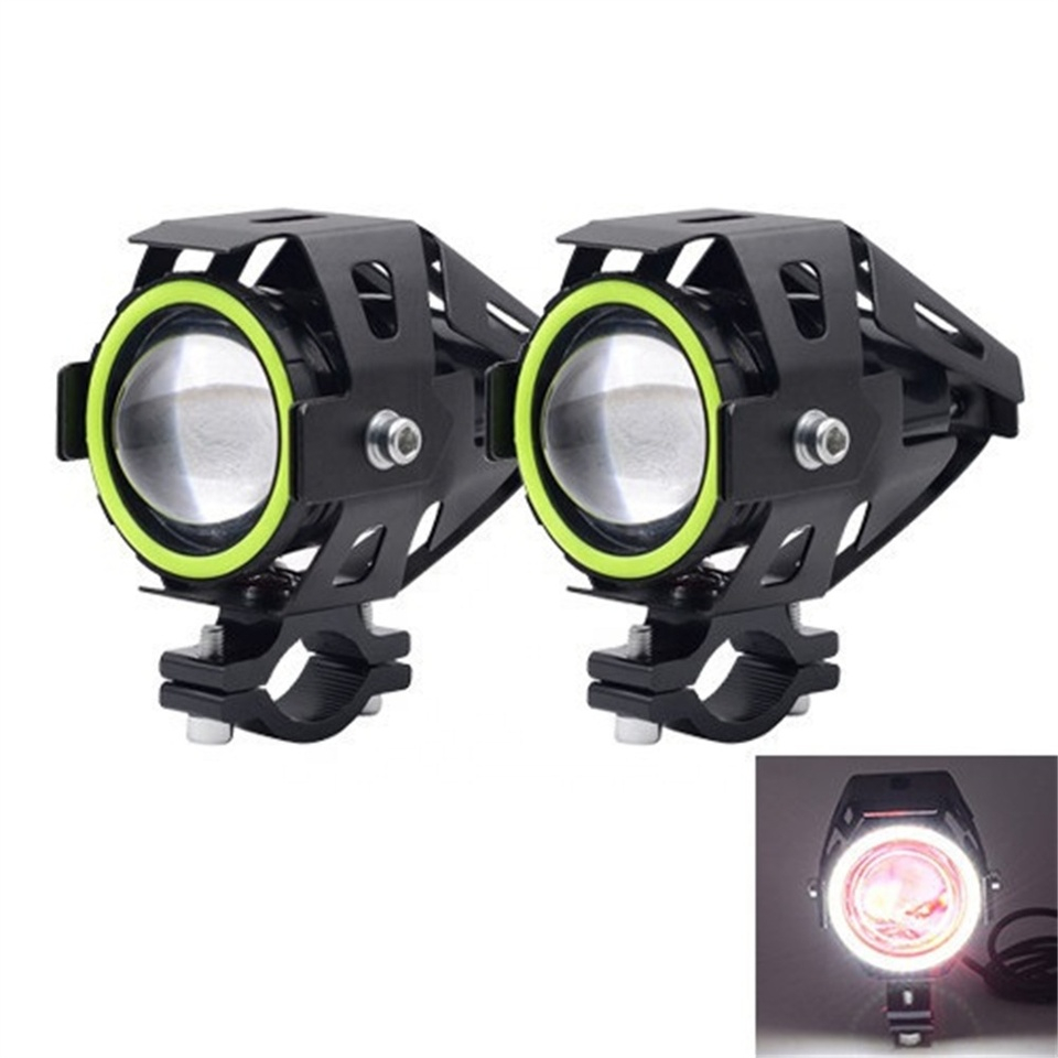 Kit Par com 2 Farol Milha U7 Olho de Anjo Moto Carro Auxiliar Led 30W Luz Branco Com Punho Interruptor e Suporte Universal Olho Anjo Angel Eye Strobo