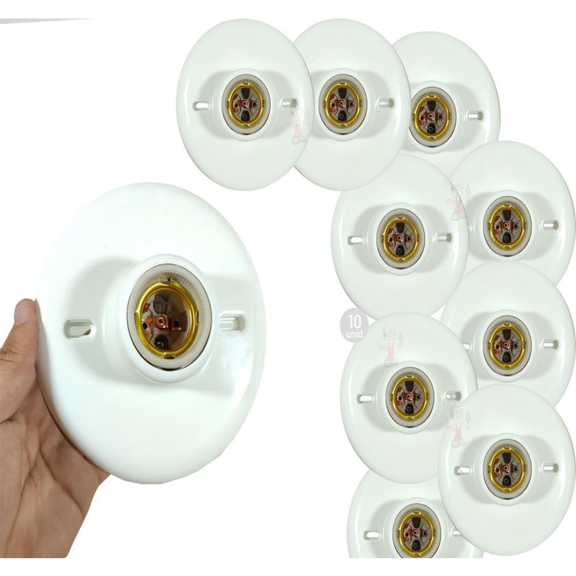 Kit 10 Plafonier Plafon sobrepor Luminaria Suporte de Lampada Soquete de Teto com Bocal em Porcelana - ROCHA