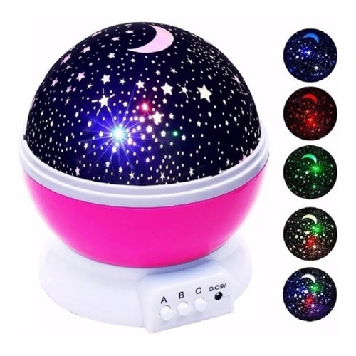 Globo Projetor Mágico Luminária Giratório LED RGB Lua Estrelas USB e Pilha Com Função Abajur - Negócio de Gênio