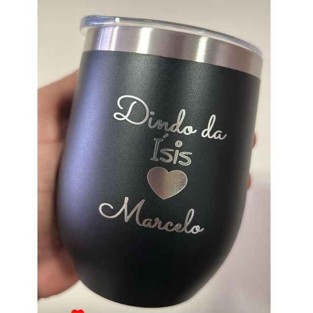 Copo Cuia FRENTE E VERSO PERSONALIZADO 350ML INOX térmico Dindo Dinda Padrinhos Madrinhas nome ou logo casamento