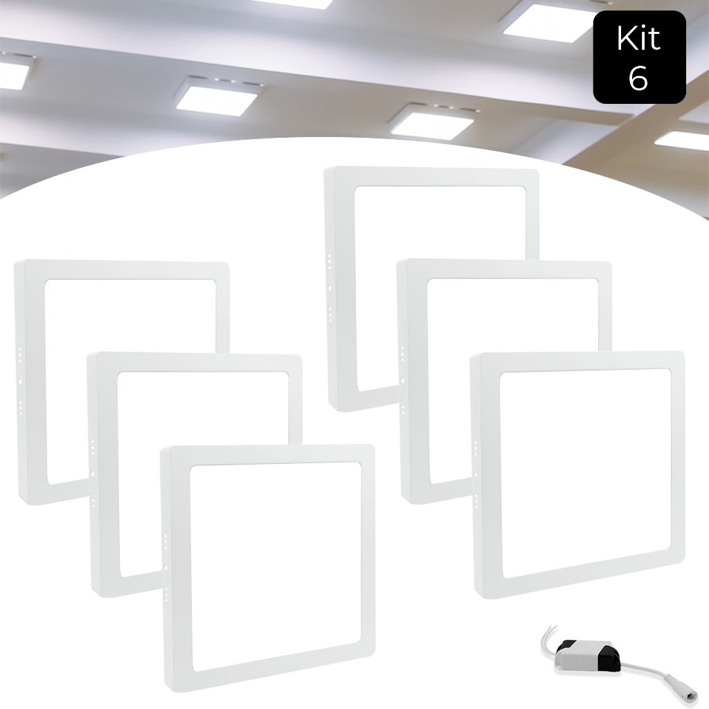 Kit 6 Painel Led Plafon Sobrepor 25w Quadrado Branco Frio