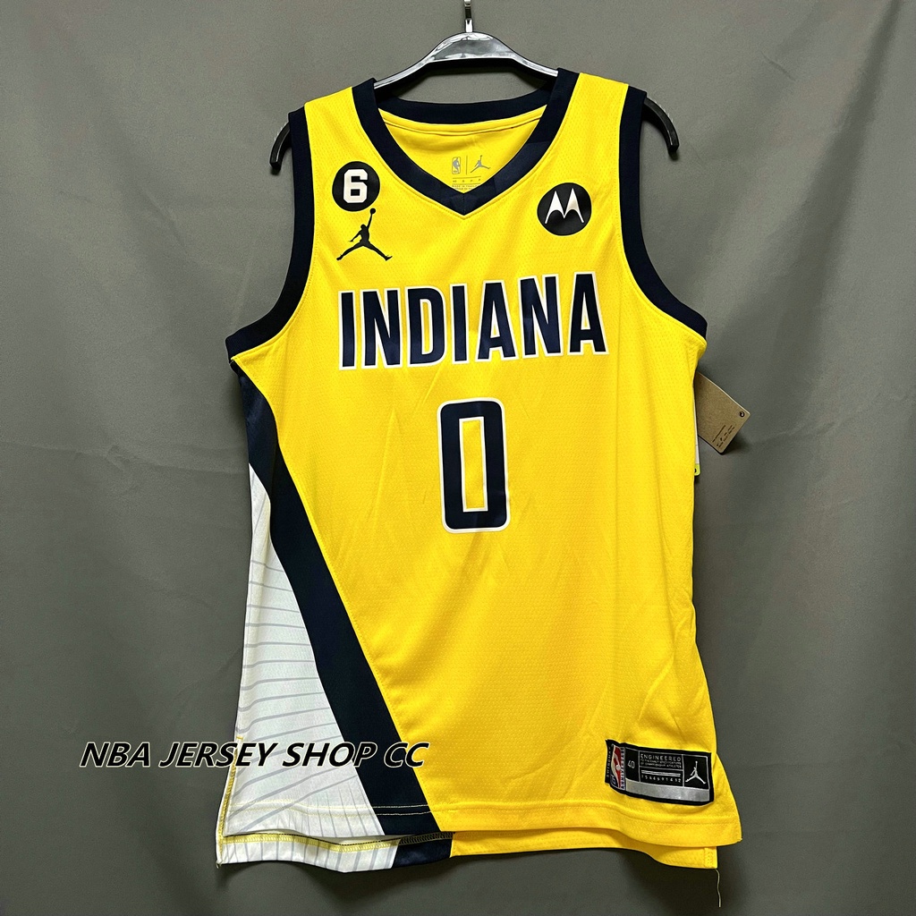2022-23 Novo Original Masculino Da NBA Indiana Pacers Tyrese Haliburton # 0 Edição Declaração Jersey Heat-pressed Yellow