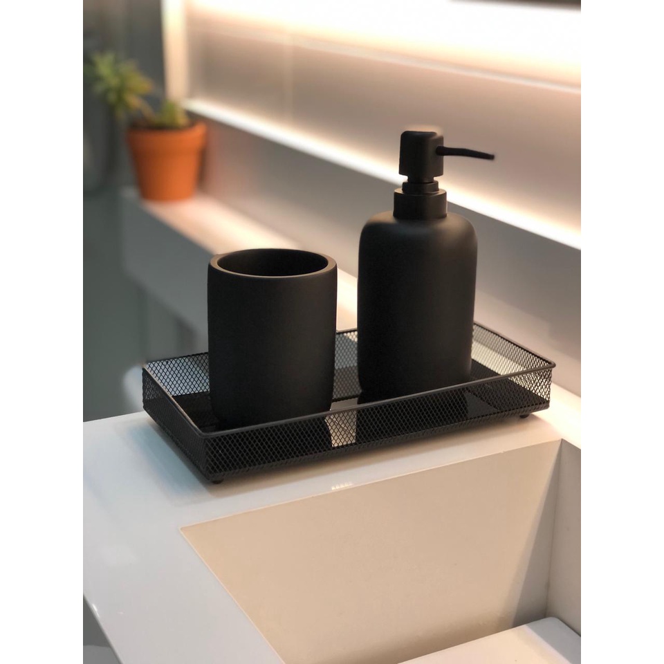 Kit para Banheiro Lavabo com Bandeja Saboneteira Liquida Porta Sabonete Escova Mood Nobre 3 peças