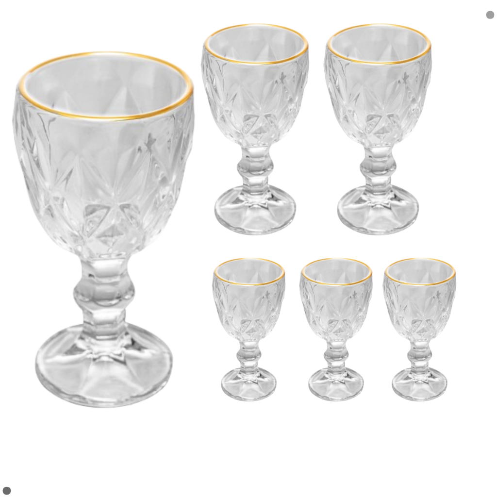 Taça Licor Decoração Natal Vidro com Fio de Ouro 6 peças 50ml - Lyor 2968