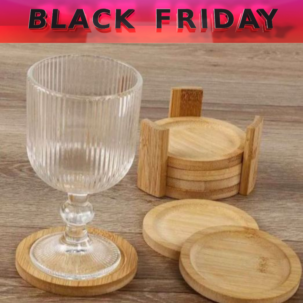 Porta Copos Redondo de Madeira Com Suporte Bambu 6 Peças Bolacha Para Copo Ecokitchen