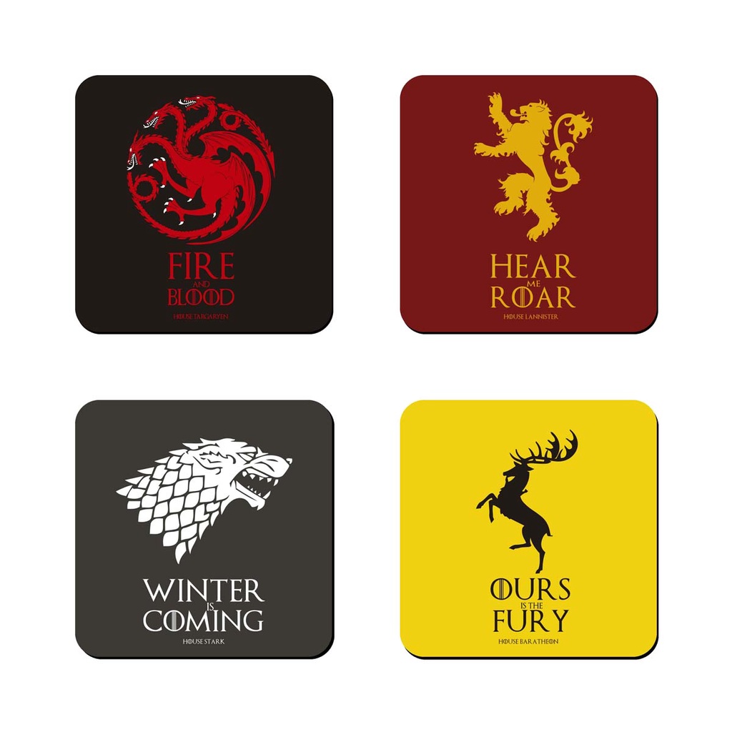 Kit 4 Porta Copo Bolacha Game of Thrones MDF Decoração Mesa Madeira Brasão Emblema Dragão Targaryen Leão Lannister Urso