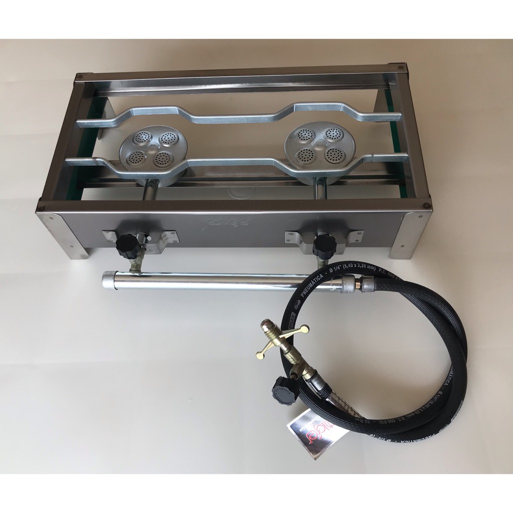 Mini Fogão Fogareiro em Inox Com Duas Bocas Alta Pressão A Gás