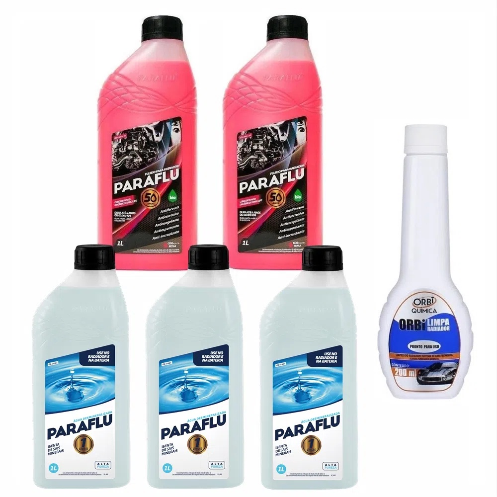 Combo 2 Litros Aditivo Paraflu Rosa Concentrado + 3 Litros de Água Desmineralizada Paraflu + 1 Limpa Radiador 200ml Orbi