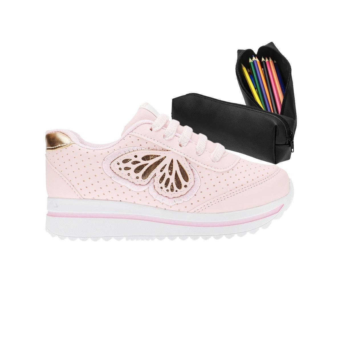 Tênis Infantil Feminino de Menina Escolar e Casual Tam 24 ao 34 - Tênis Plataforma da Butterfly + Bolsinha e Estojo