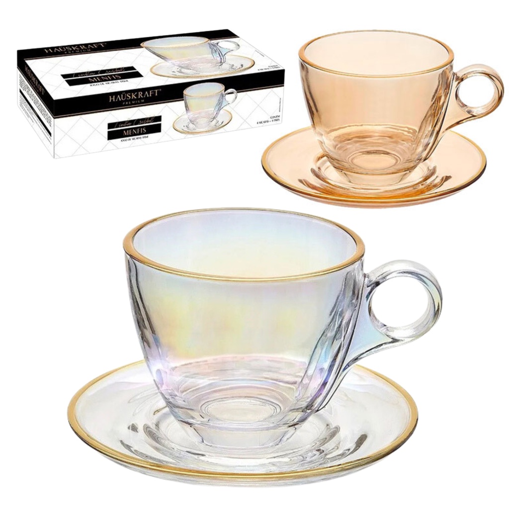 Jogo de 4 xícaras de cristal e 4 pires 170 ml 08 peças Menfis