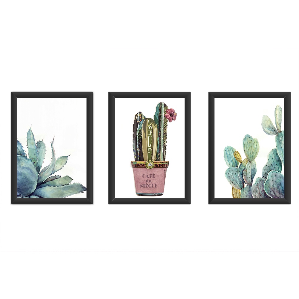 kit 3 quadros 18x24 cm com moldura em madeira - sem vidro. escolha entre diversas opções de plantas e flores.