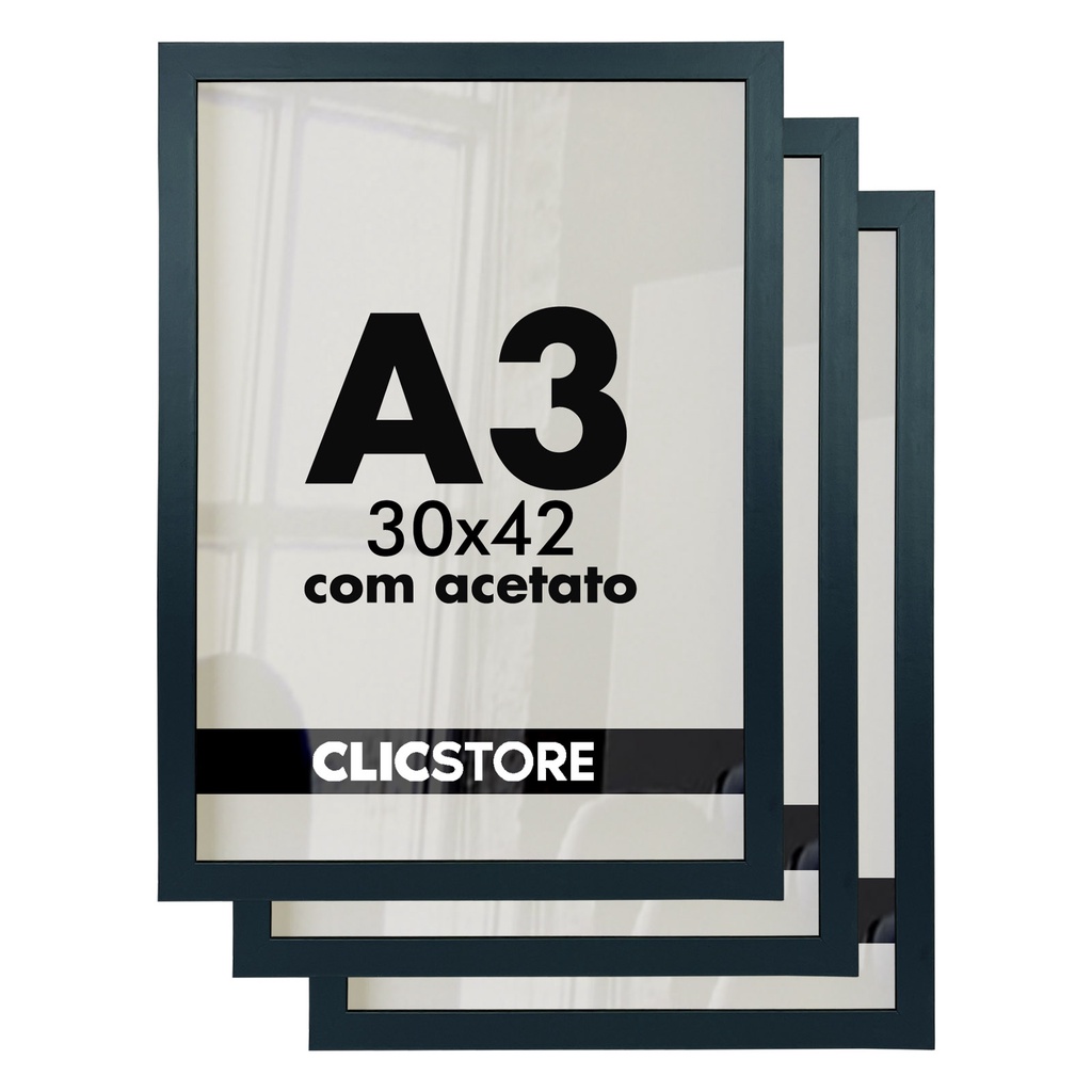 Kit 3 Molduras A3 Foto 30x42 Diplomas Certificados Qualidade Premium Acetato Quadros Decoração Arte Imagem Sala Quarto