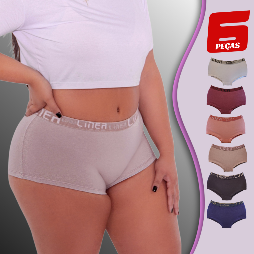 Kit Calcinhas PLUS SIZE Cueca Boxer Feminina Refoçada Algodão Conforto e Qualidade | Macia, Respirável, Tam.: 46 ao 52
