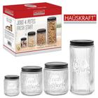 conjunto de pote de vidro redondo com tampa hermética de metal preto fresh start 4 peças - HAUSKRAFT