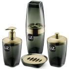 Kit 4 Peças Higiene Acessórios Banheiro Premium UZ Preto e Dourado