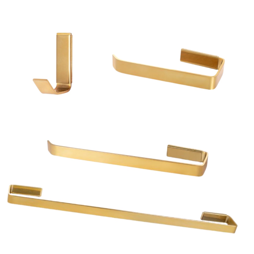 Kit Jogo De Conjunto Acessorios Para Banheiro Quadrado 4 Peças Aço Inox 304 Luxo Dourado Gold