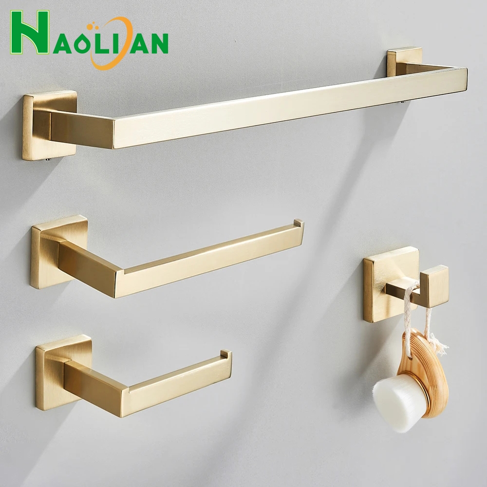 Kit Acessorios Para Banheiro Inox 304 40cm/56cm 4 Peças Quadrado Luxo Preto/Dourado/Cromado/Dourado Escovado