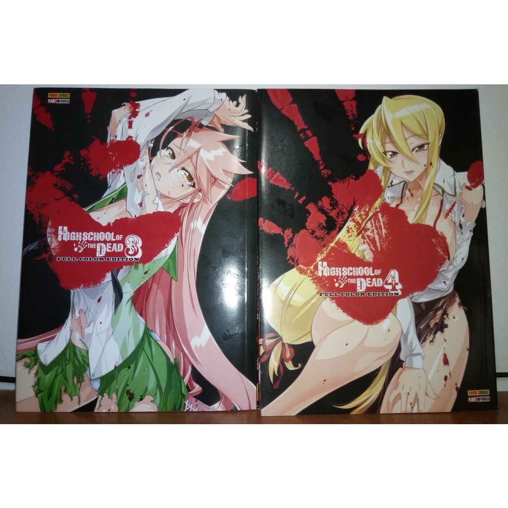 Mangá HQ Highschool Of The Dead Volumes 3 e 4 Coloridos (estilo HQ) e 1 Normal preto e branco Mangá.