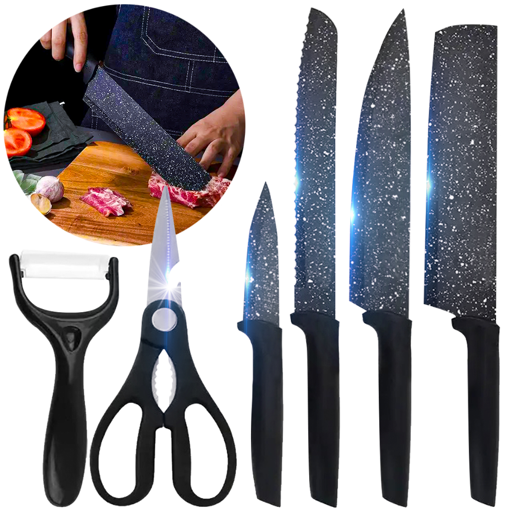 Kit Conjunto Jogo De Facas Antianderente Kit 6 Peças Chef Cozinha Aço Inoxidável Churrasco