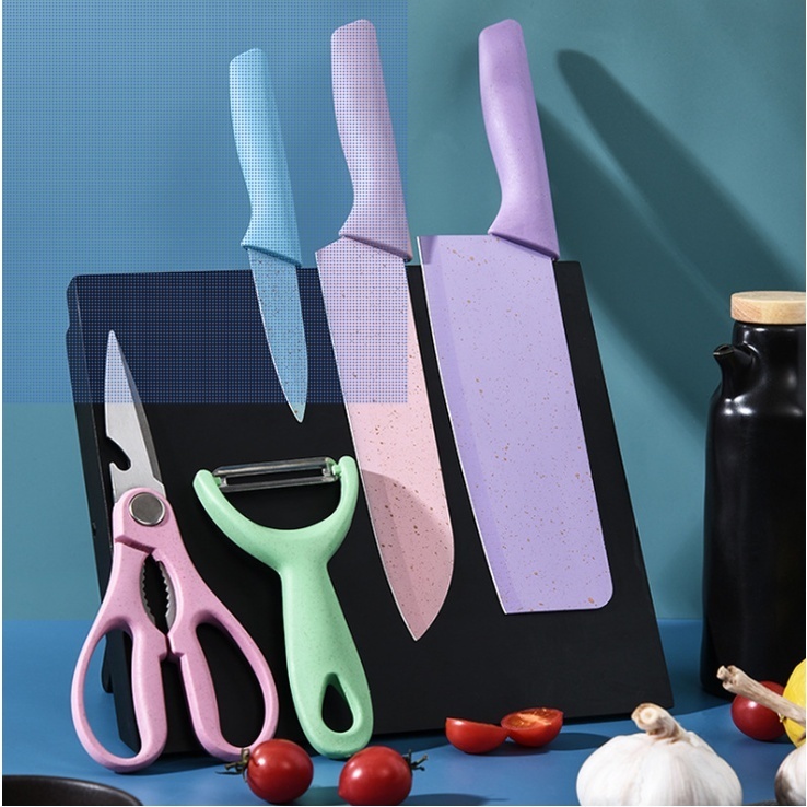 Kit 6 peças Jogo de facas Natal de Cozinha Tesoura Inox Conjunto de Facas para Churrasco Profissional Várias Cores