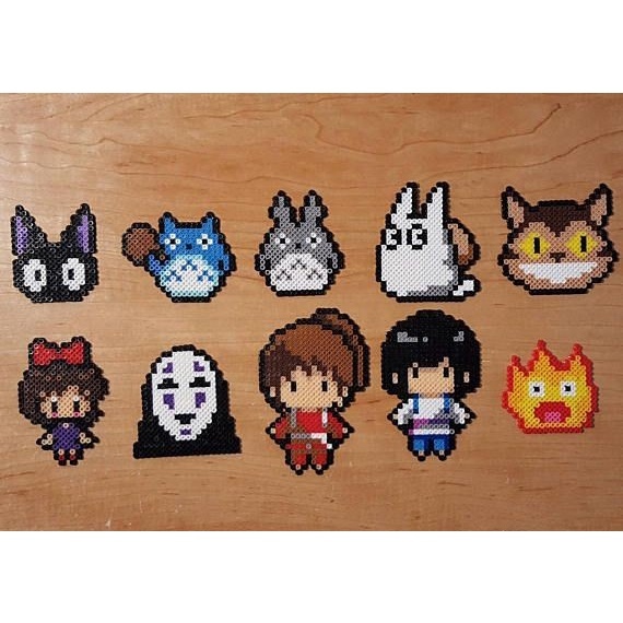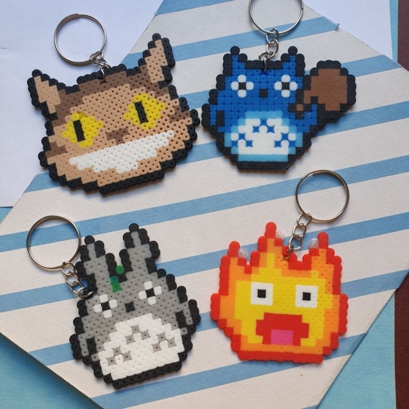 Studio Ghibli Ímã ou Chaveiro - Totoro e Castelo Animado - Pixel Art/ Hama Beads
