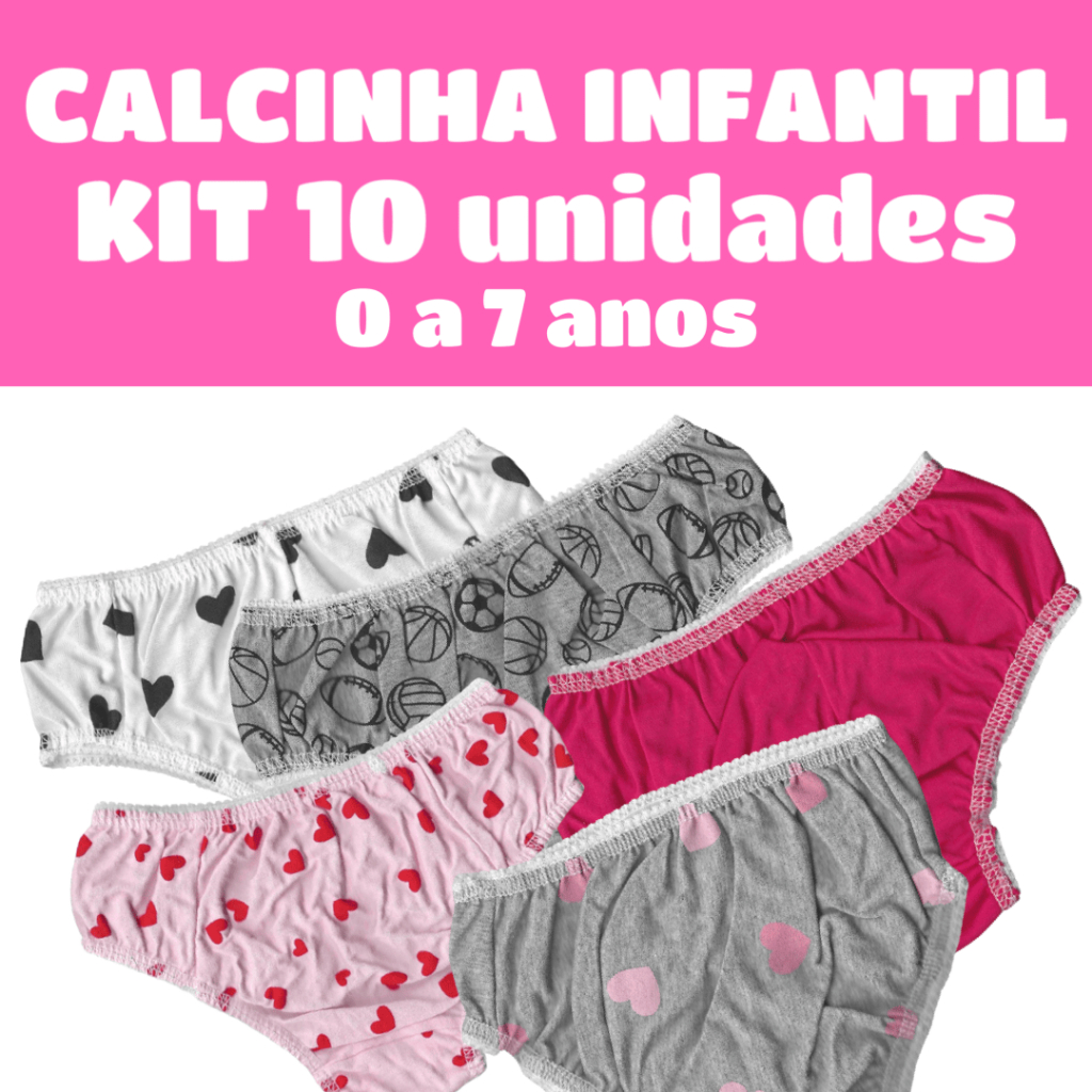 Calcinha Infantil Kit 10 un Calcinha bebê Calcinha menina 0 a 7 anos algodão calcinha algodão Enxoval Infantil