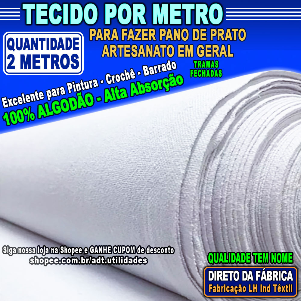 Pano de Prato Guardanapo de Cozinha Copa em Metro Branco Liso 100% Algodão Encorpado Largura 70cm