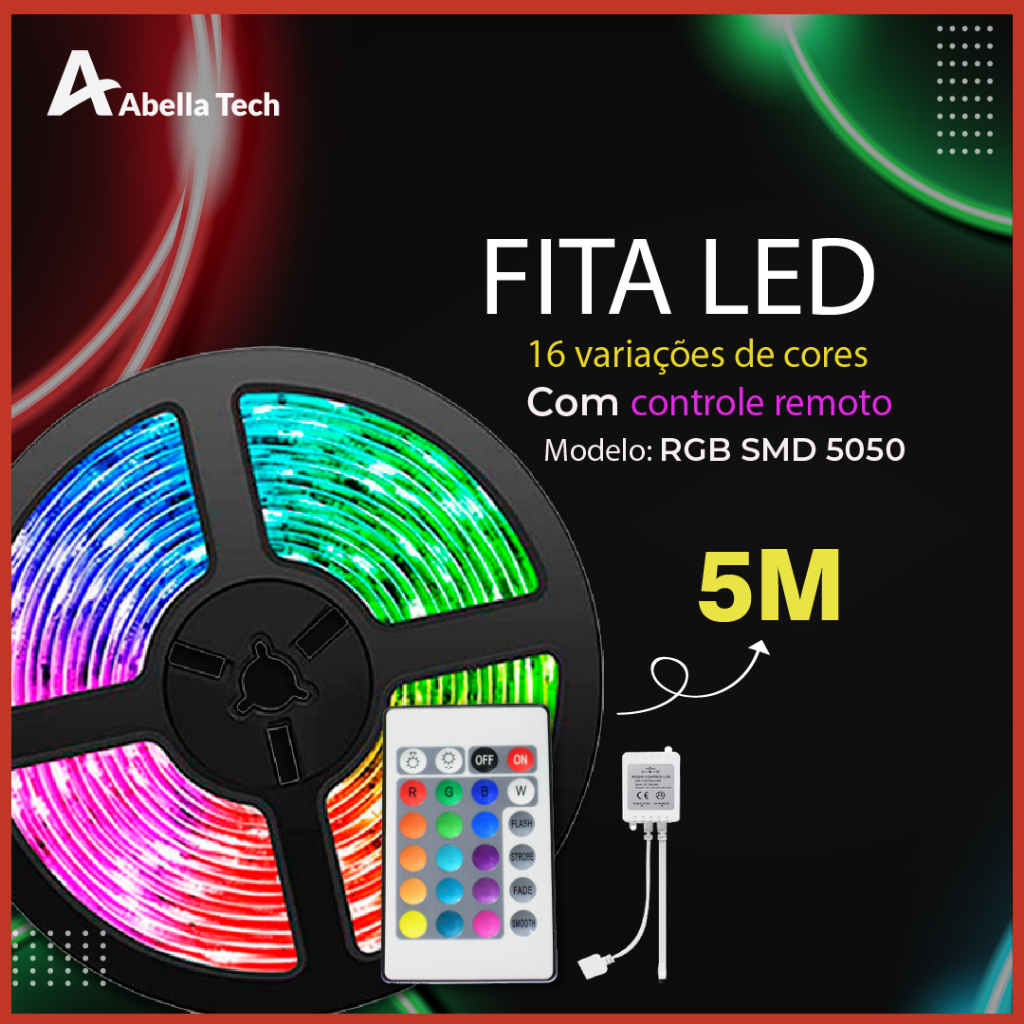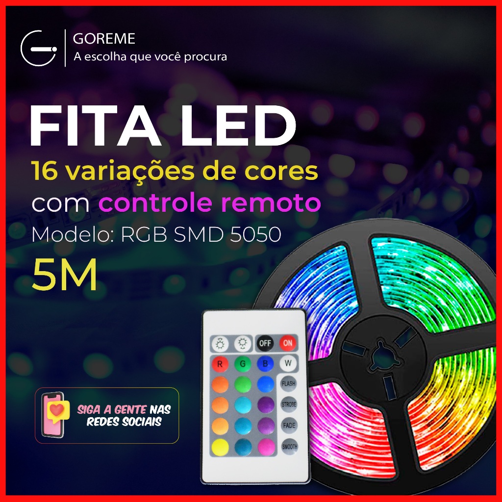 Fita LED 5050 SUPER LED ULTRA RGB 5M 12V 300 LEDS FITA + CONTOLE | 16 CORES IP20 Pronta Entrega