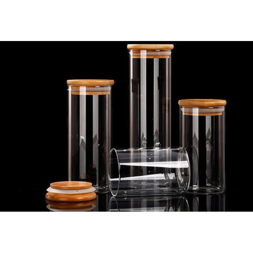 Kit Potes Herméticos 4 unidades, Vidro Borossilicato com Tampa de Bambu /1000ml/610ml/510ml/350ml - Flajushop