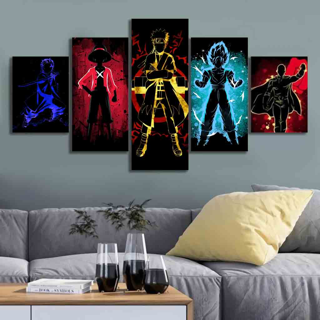 Quadro Decorativo 5 peças Mosaico quite kit Modular Animes Otaku Naruto Shippuden Monkey Luffy One Piece Goku Dragon Ball Super Z Kimetsu no Yaiba Demon Slayer Tanjiro Punch Man Saitama